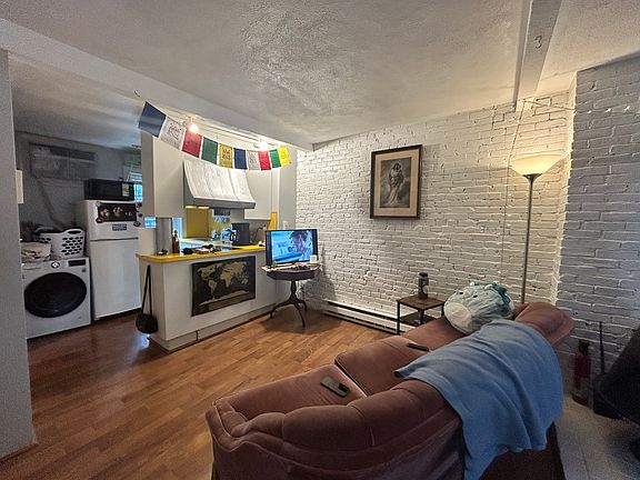 Bay Village... Winchester St.. Wonderful location in historic neighborhood located steps to Boston Public Garden, Boston Common, Back Bay, South End and downtown Boston. This entire floor top studio features hardwood floors, exposed brick, working fireplace, full kitchen, great light, three front-facing windows, bedroom alcove, tiled bath. Heat not included. No pets. One Month Broker fee. $2400/month. Retro MCM studio with chimenea fireplace. In unit laundry Available May or June. Flexible move in date 1 year, Utilities separate. In unit laundry Available May or June
