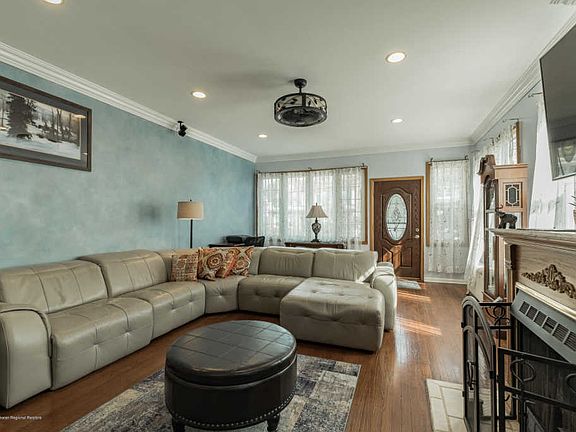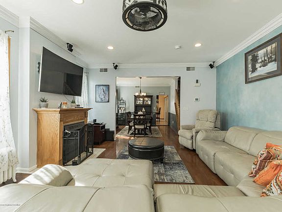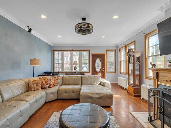 Attached single family home, 3 flrs of living space. 4 bdrms and 3 full baths (jacuzzi), renovated in 2001. Close to parks and shopping centers. Walk to train downtown or hop on NY bus. Manhattan only 20 minutes away. Sun-filled first floor features large Living rm. Dining rm with beautiful fireplace. Hardwood floors all throughout the house. New stainless-steel appliances, eat in kitchen with modern Corian countertops, tile flooring and center island. New Pella sliding door leading to an amazing deck w/above ground pool for relaxing. 2-zone central AC. New fenced in maintenance free yard. New large hot water heater and furnace. Finished basement with separate entrance. Can be used as home office or additional living space for your family. Hurry!