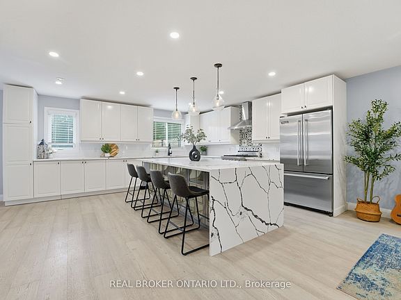 Welcome home to 33 Winter Way, Brantford. This beautifully finished two-storey home is completely move-in ready and offers plenty of space for the growing family all in a quiet, mature neighbourhood close to every major amenity. Step inside to a bright and modern open-concept design where contemporary style meets comfortable family living. The spacious entryway opens to a large entertainers kitchen featuring ample cupboard space, tiled backsplash, stainless steel appliances including a Viking gas range and oven, and a large island with seating for four plus additional built-in storage underneath. Adjacent to the kitchen, the inviting living room is filled with natural light and highlighted by recessed pot lighting throughout. A spacious dining area connects seamlessly to the kitchen and main-floor family room, complete with a beautiful bay window. The family room offers the perfect place to gather and unwind, with sliding patio doors that open to your private backyard retreat. A convenient two-piece powder room completes the main level. Upstairs, youll find three generous bedrooms including a large primary suite with ensuite, along with a beautifully updated four-piece bathroom. Need more space? The fully finished lower level includes a bright recreation room, an additional bedroom that can easily serve as a home office or gym, a three-piece bathroom, and a finished laundry room. Step outside to enjoy a large wooden deck complete with gazebo perfect for outdoor dining, lounging, and entertaining. Pride of ownership is evident throughout this meticulously maintained home. Move-in ready and full of thoughtful upgrades, 33 Winter Way is the perfect opportunity for families looking for more space in a fantastic Brantford neighbourhood.