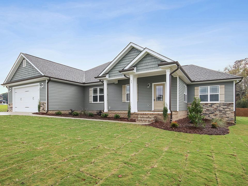 ONE STORY with 3 bedrooms, office, open living/dining/kitchen on beautiful lot in established neighborhood. New Construction by Watermark Homes with all their upgraded features! The Eucalyptus features one story living with an open concept. Great kitchen with gorgeous tile backsplash, granite counter tops, center island and walk in pantry. Owner's suite features an ensuite with walk in tile shower, dual vanity & walk in closet. Office/craft/hobby room for your desired use. Secondary bedrooms with full bath. Rear covered porch, concrete patio and 2 car garage. Gorgeous fixtures and quality throughout this beautiful home. Enjoy this established neighborhood and fish in the pond or golf in nearby Reedy Creek Golf Course. Conveniently located between Garner & Benson near I-40.