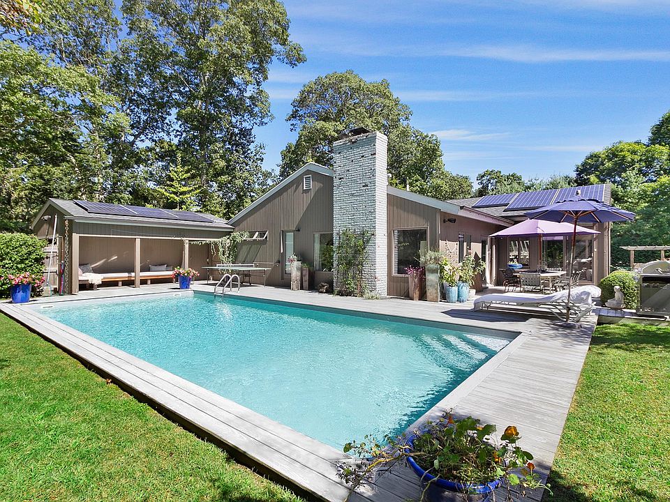 Located on coveted Wireless Road just outside the Village of East Hampton. This approximately 2,250 sf residence offers three bedrooms with three full and 1 half bathrooms. Designed with easy living in mind. This light-filled, single-story California ranch boasts open plan living and vaulted ceilings with a modern chef's kitchen featuring top-of-the-line stainless steel appliances and ample counter space. There are multiple sitting and dining areas both inside and out that make this home ideal for entertaining. The generously sized master suite has a radiant heated master bathroom with free standing soaking tub and large shower area along with private walk out to a sunning deck for a spa- like experience. The grounds are complete with ample decking, an outdoor dining area, heated pool and covered lounge area. All this mere moments to village shops and restaurants as well as world class ocean beaches.
