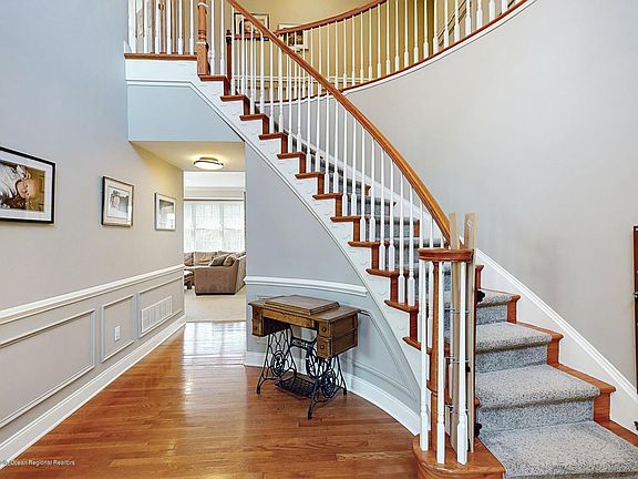 This north-facing, well-maintained Inglewood Colonial model of the Toll Brothers' award winning community located in Castle Point in Marlboro is fully loaded with upgrades and its own unique style. The soaring 2-story foyer provides a grand welcome. The living and dining rooms are equipped with beautiful bay windows, and the high ceiling conservatory with blue stone tiles is perfect for recreation. A study room on the first floor has built-in bookshelves. There is a brand new gas burning fireplace as well as a newer generator, carpet & runner, ceiling fans, and gorgeous light fixtures, washer, dryer are 1 year old. The modern kitchen has been upgraded with beautiful wood cabinets with a center island and a staircase from the spacious 2-story breakfast area to the 2nd floor. Upstairs the