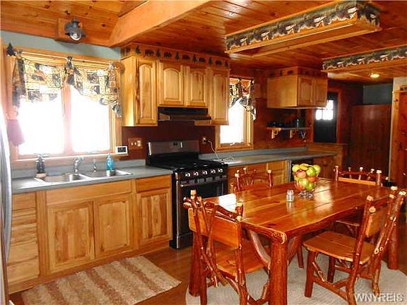 Java Lake rustic charmer! This year around home can be yours just in time for summer fun at the lake. Just a short walk to fishing and swimming. (row boat included)You will love the house the minute you walk in the door! First floor is open with big country kitchen including dishwasher, stove and refrigerator. 1st floor bedroom and laundry. Stairway to loft and 2nd bedroom with in wall fireplace for cozy addional heat source. Large deck, outside bar area and storage shed. Take a look today!