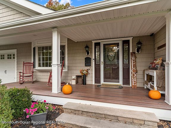 Spacious expanded ranch located on a quiet tree-lined street on over .5 acre in North Tinton Falls. Minutes to downtown Red Bank, GSP, and RT18. Updated with quality materials and exquisite details throughout. Exterior features 30-yr Timberline roof, premium cedar impressions siding, HE Anderson 400 series windows, solar panels, composite decking, pavers, and LED lighting. Interior features Turkish travertine and solid oak floors, Brazilian granite countertops in eat-in kitchen, custom molding, stainless steel appliances, LED lighting, surround sound in living room, and whole house air purifier. 2 zone HVAC and select lighting can be controlled remotely. Private parklike backyard includes an inground saltwater pool with new liner and HE pool equipment, patio, pergola, firepit, storage, and so much more. Nothing to do but unpack and relax!