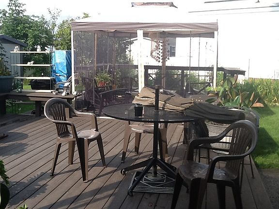Great mobile home in an established park! Unique landscaping and family room make this one a Must See! Newer metal roof. Parquet floors in bedrooms, laminate flooring in living room. Appliances stay! A gazebo plus 2 sheds for storage. Patio and large deck for summer relaxation. A short walk to town walking/biking path. Free basic cable! Minutes to Eastern Hills Mall.