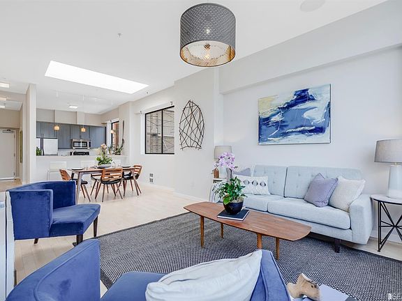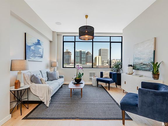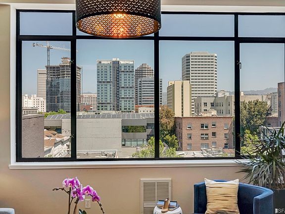 Penthouse corner unit in the historical Beaux-Arts style Golden Bridge offers NYC style loft living with downtown views and abundant natural light. Featuring an urban yet elegant interior, 1 bed + den, 1.5 baths, soaring ceilings, skylights, bonus storage, and in-unit laundry. Gourmet kitchen, bonus storage locker and hardwood floors all within blocks of Old Town, Oakland's City Center, Lake Merritt, Jack London, Fox Theater, Uptown, BART, and AC Transit. A perfect commuter's paradise. 99 Walk Score! Parking is leased offsite - HOA has annual agreement with garage.
