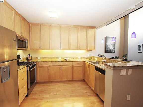 Stylish SOHO inspired condo with vaulted ceiling & expansive windows. This spacious and open floor plan has in unit washer/dryer. Updated kitchen with stainless appliances and granite counters. 2 blocks from BART. Enjoy the best of Oakland's nearby galleries, night life, dining and shopping.