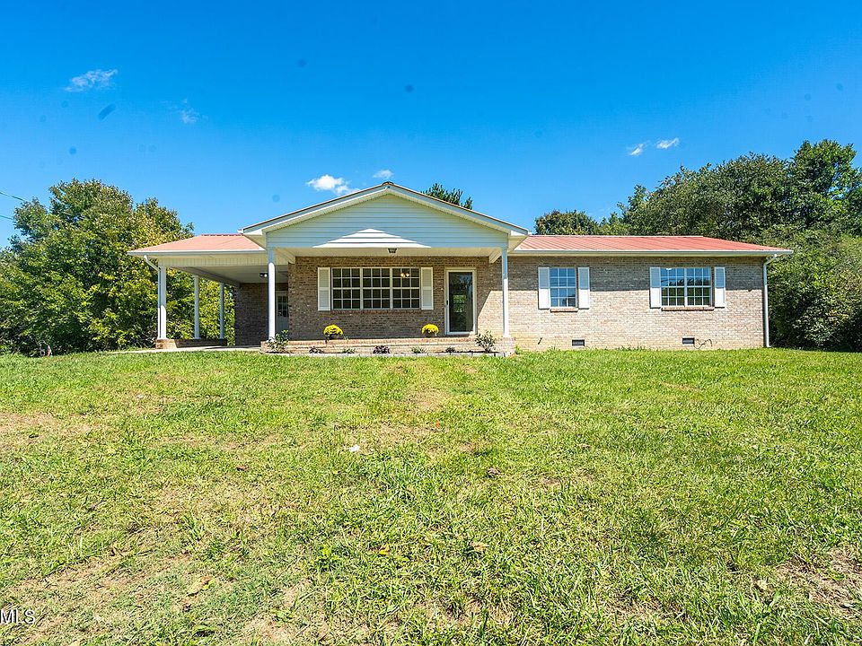 Great opportunity on this 3-bedroom brick ranch home. Incredible hilltop setting located down a quiet country road. The 40.84 surveyed acres is rolling and has a nice hay field, and the majority is woods, 2 ponds and creek running through it. Completely renovated. Great curb appeal and all-brick elevation, metal roof, covered porch, and a carport. Interior features include large living room, updated kitchen new stainless steel dishwasher, microwave, stove, and new cabinets, plus a countertop with a snack bar. Large dining area with French doors to the new deck. Master suite has its own private full bath. Main bath has been updated too. Luxury Vinyl Plank flooring, new paint, light fixtures, and heat pump installed this summer. Immediate occupancy available. Broker Owned