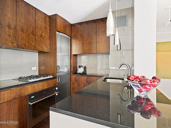 Apartment 16G is a stunning corner one bedroom one bathroom home with private terrace in Manhattan's exclusive Gramercy Park neighborhood. The entry foyer leads to the generous living room with dining gallery. French doors open to the private terrace with expansive views to the south and east. The large open, custom kitchen is fitted with black granite countertops and stainless steel appliances including a Gaggenau cooktop, Bosch dishwasher and a Franke sink. The master bedroom has two exposures and a custom walk-in closet. The bathroom has been meticulously renovated with double sink, Kohler bathtub, and slate tiling throughout. A built-in home office completes this perfect home. This elegant and timeless renovation includes wide plank teak floors, custom lighting and through wall air-conditioning. 330 Third Avenue has a full-time doorman, live-in superintendent, storage, bike room, and laundry room. Pieds-a-terre, parental co-purchasing with working children are permitted; subletting is permitted after two years of residency. Dogs up to 40 pounds are allowed. Located near all subway lines, parks, nightlife and restaurants.
