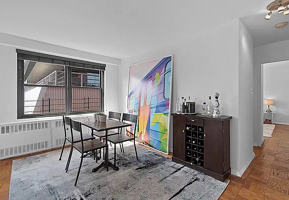 Perched on the top floor with unobstructed views of the Manhattan skyline, Williamsburg Bridge, Chrysler Building, and One Vanderbilt, this corner one-bedroom apartment benefits from excellent light throughout as a result of its abundant windows with southern, western, and northern exposures. The expansive layout allows for a large living area and dining area that are perfect for entertaining guests. The windowed kitchen features an updated dishwasher, sizable refrigerator and new oven. The generously sized bedroom with double exposures can easily fit a king-size bed, dresser, and desk with room to spare. Other features include ample closet space throughout, hardwood floors, and an all-white tiled bathroom. Built in 1964 and converted to a cooperative in 1984, this full-time doorman building offers a garage, storage, bike room, a new laundry room, boiler, and roof. The building recently underwent an extensive renovation including the lobby and hallways. 330 Third Avenue allows dogs up to 40 pounds, pied-a-terres, and co-purchasing. Live steps away from public transportation, Gramercy, Madison Square, Union Square parks and tons of restaurants. Fairway, Trader Joe's and Westside Market are all nearby. Bring your contractor and make this beautiful apartment your own!