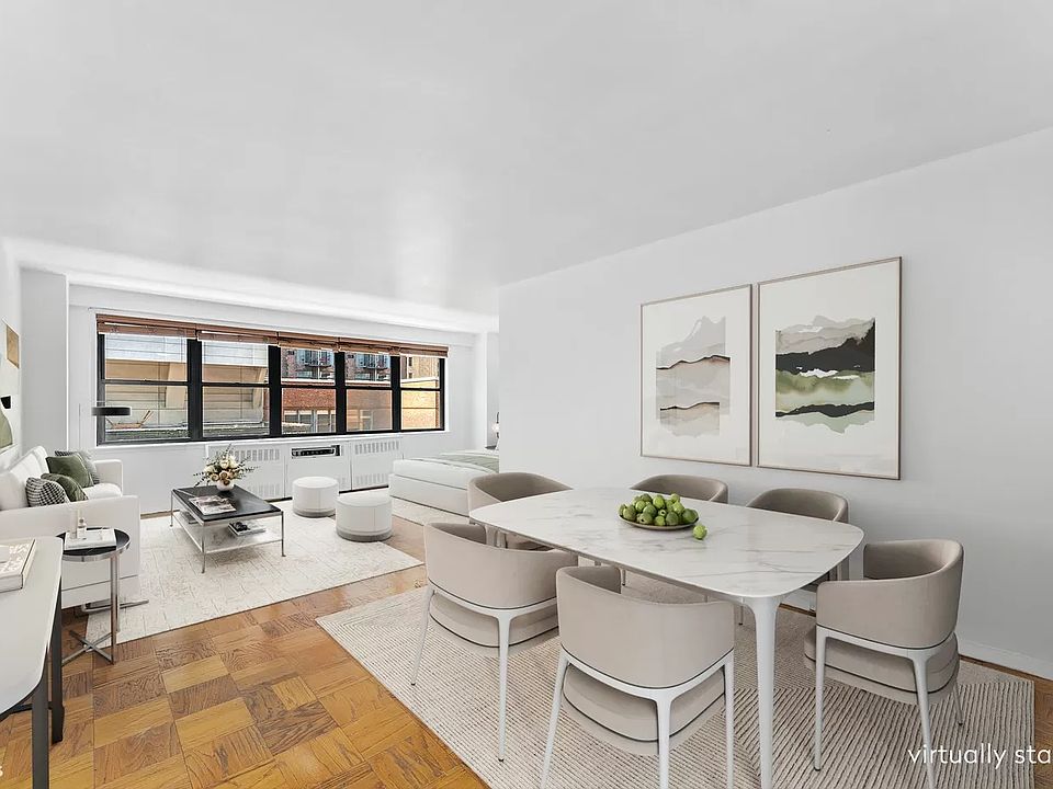 Renovated oversized alcove studio easily convertible into a one bedroom. This bright and cheery home features a gourmet windowed kitchen with custom cabinetry, Silestone countertops and top-of-the-line stainless steel appliances. Spa windowed bathroom has and Kohler fixtures, marble like floors and a relaxing soaking tub. The large living and dining areas are perfect for all your entertaining needs. Three spacious closets throughout along with a dressing area off your queen sized sleeping alcove. Located in one of Gramercy North's Best Full Service Buildings. Features Include Live-in Super, 24hr Door Attendant, Great Staff, New: Hallways, Lobby, Mail & Package Room and Laundry Facilities. On-site Garage. Bike & Storage Room Available. Centrally Located Near Major Routes of Transportation, 3 Parks, Nightlife, Restaurants, Shopping and All Conveniences. Co-purchases with working child, Pied-a-terres and Dogs up to 40lbs Allowed. Subletting is Allowed After Two Years Ownership for up to Four Years. Resident Building Specialist on Site Available to Answer Any Questions. Board approved.
