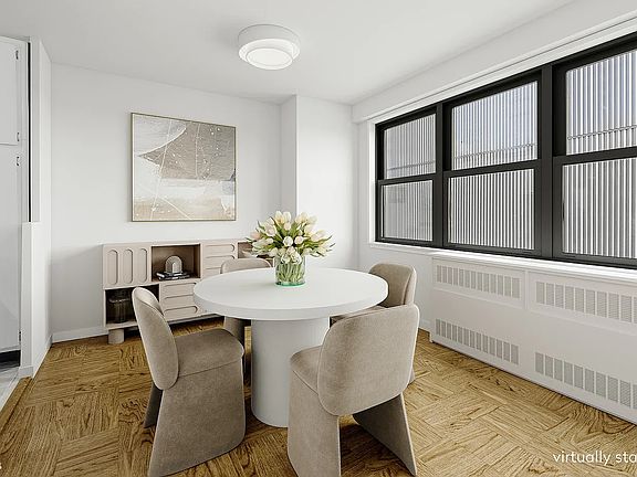 New to Market! Peaceful oversized junior four with large dining alcove that can easily be converted into a home office or second bedroom. Living room has plenty of space for all your entertaining needs. Huge bedroom accommodates a king size bed and nightstands. Kitchen has been updated and has stainless steel appliances. This great layout has incredible closets/storage throughout. This property is pin-drop quiet with west-facing industrial views. Located in one of Gramercy North's best full service buildings. Features include live-in super, 24hr door attendant, great staff, new: hallways, lobby, mailroom, package room and laundry facilities. On-site garage. Bike & storage room available. Centrally located near major routes of transportation, 3 parks, nightlife, restaurants, shopping and all conveniences. Co-purchases, pied-a-terres and dogs up to 40lbs permitted. Subletting allowed after two years ownership for up to four years. Resident building specialist on site available to answer any questions.