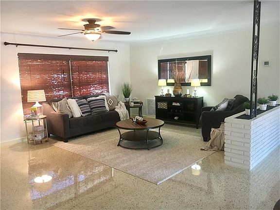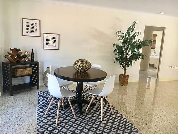 Feel the love!! This remarkable mid century coastal ranch has been immaculately maintained by the same owners since 1964 and it shows with many original features still in pristine condition. Watch the light dance off the freshly polished terrazzo floors in this airy, expansive layout with generously sized rooms. Rare to this vintage beach house is the enormous master suite with separate sitting area and a recently remodeled en suite, creating a sublime sanctuary. The dwelling is sited towards the lot frontage leaving a size-able backyard with mature landscaping ripe for for creating your own backyard oasis and pool. Many updates within the last year include: New carpeting, Interior and exterior paint, New Central AC with duct work, Updated baths with molding and built-ins, kitchen appliances, ceiling fans & lighting. With in walking distance to world renown St.Pete Beach, and situated in one of The Gulf Coasts most popular neighborhoods, This house is ready to become a home once again!