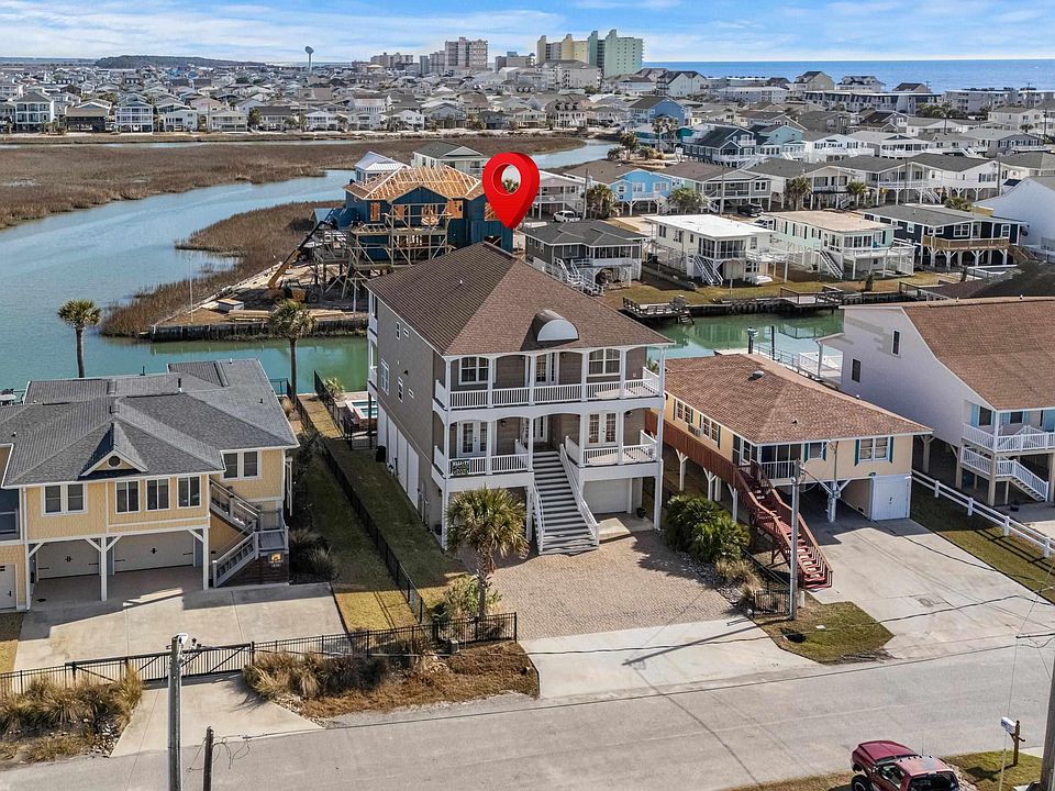 Fully Furnished, Spacious 5-Bedroom Channel Home in Cherry Grove with Pool, Hot Tub, Floating Dock & Wet Bar Nestled in the desirable Cherry Grove area, this 5-bedroom, 4-full and 2-half bath channel home offers a perfect blend of comfort and luxury, ideal for both relaxation and entertaining. Enjoy stunning water views from nearly every room and take advantage of the home’s ample outdoor space, including a private pool, hot tub, and a floating dock for all your boating and water activities. Inside, the open-concept living and dining areas are perfect for hosting family and friends, while large windows let in plenty of natural light and frame the beautiful surroundings. The well-equipped kitchen includes modern appliances and plenty of counter space for the home chef. Upstairs, you’ll find an additional seating area perfect for unwinding or taking in the views, as well as a wet bar—ideal for entertaining. Each of the 5 spacious bedrooms offers comfort and privacy, and the 4 full baths and 2 half baths are designed with convenience and style in mind. Outdoor living is equally impressive, with a large deck area surrounding the pool and hot tub, ideal for enjoying the coastal lifestyle. The floating dock is perfect for boating, fishing, or simply soaking in the beauty of Cherry Grove’s waterways. For added convenience, the ground floor features plenty of lockable storage, ideal for keeping your beach gear, bikes, and other outdoor equipment secure and organized. This home is also just a short walk to the beach, giving you easy access to sun, sand, and surf whenever you desire. Located just minutes from local shops, dining, and the beach, this home offers the best of both worlds: a peaceful retreat with all the amenities you could want, in one of the area’s most coveted neighborhoods with no HOA.