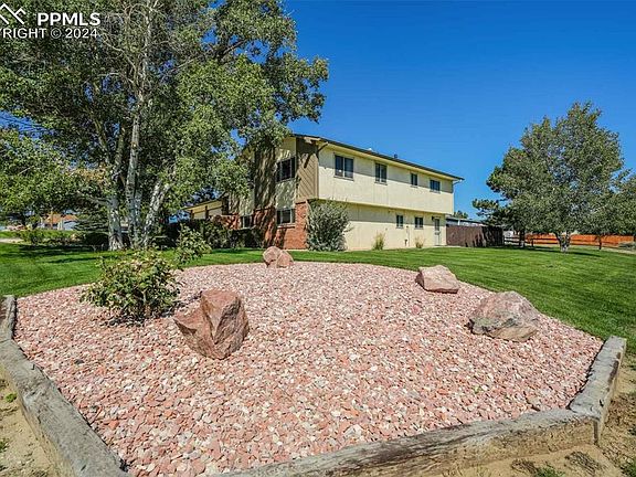 Spacious and upgraded 5-bedroom home on a corner lot! This beautifully maintained home offers a perfect blend of comfort and modern upgrades. Situated on a large lot with mature trees, this home features a fully fenced backyard, a spacious Trex deck and a stunning stamped concrete patio, ideal for outdoor entertaining. Inside, you’ll love the renovated kitchen complete with stone countertops and new stainless steel appliances. The main level living/dining/kitchen area is open concept with vaulted ceilings! The main level also features the primary bedroom w/adjoining 3/4 bath, 2 additional bedrooms and a full hall bathroom. The basement has 2 more bedrooms, a 3/4 bathroom, huge rec area with gas stove and ample storage space. The basement also has a walkout! The home also boasts new windows, a new electrical panel, and plenty of storage throughout. The backyard offers even more with a shed, dog run area, and ample space for outdoor activities. This home is located in the heart of Calhan & less than 20 minutes from Route 24 & Woodmen Rd! Come take a look, we think you'll love it!