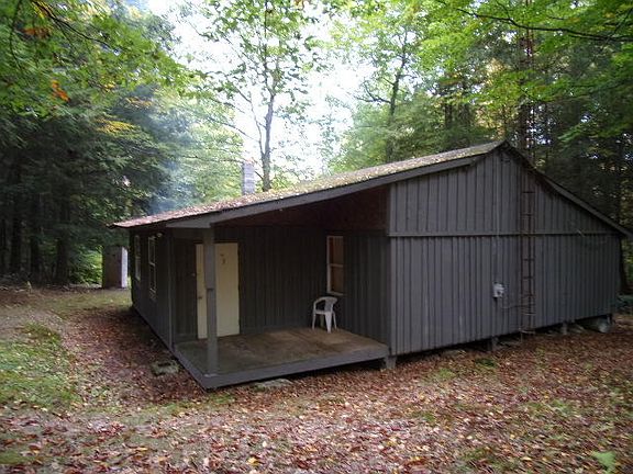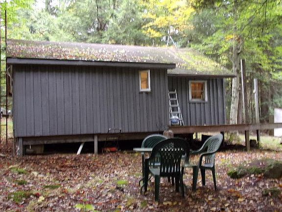 Private cabin behind locked gate in the woods with 7.65 acres, bordering State Game Land. This gem is offering a well, indoor plumbing w/hot water heater, electric, and wood heat, refrigerator, gas stove, and microwave. This cabin has all the amenities of a home and could be used year-round. This roomy cabin has 2 bedrooms, 1 large bathroom with a walk-in-shower, open concept living room, dining room, and kitchen with vaulted ceiling sporting wood beams. The wood stove is surrounded by tile. Covered front porch and rear deck is great for entertaining and enjoying nature. Rod and Gun Club nearby offers stocked fishing pond, pavilion, and gun ranges. Sizerville State Park is also less than 5 miles away and offers a free swimming pool, nature center, stocked trout stream and campground.
