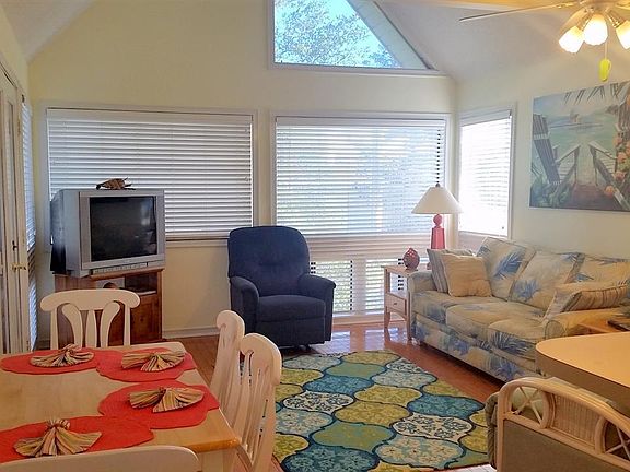 Just steps to the beach from this bright and airy condo in Arcadian Dunes, conveniently located in the popular Shore Drive area. The 3rd floor offers cathedral ceilings in every room and ultimate privacy with no one above you. Being located on a corner and built around a courtyard, there is only one wall connected to another condo. Being offered fully furnished, this condo has been updated with hardwood floors and tile throughout as well as a newer HVAC unit ( approximately 2 years old). A fully equipped kitchen, washer and dryer and screened porch make this an excellent property for use as a primary residence, second home or vacation rental property. Community amenities include 2 pools, a tennis court, fitness center, steam room, jacuzzi, sauna, grilling/picnic area as well as an on-site restaurant! Building 8 is located just one block from the ocean and close to numerous restaurants, shopping and entertainment venues. A "turn key" opportunity for a great price!