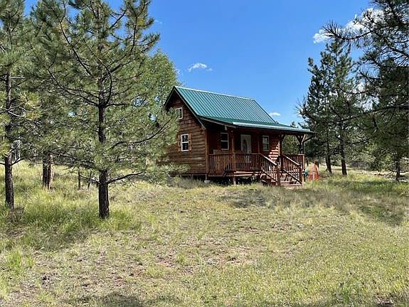 Rustic and Cozy, escape to this charming one-room cabin with classic log siding, a sturdy metal roof, and vinyl windows to keep the elements at bay. A welcoming covered front deck is the perfect spot to sip coffee and take in the beautiful views. Inside, the cabin is fully wired and ready for cove heaters and appliances, making it easy to finish to your taste or complete as your next project! With a permitted septic system already installed and power on site, the heavy lifting is done thus eliminating major infrastructure costs. Situated on a level lot with beautiful views—and with an adjoining parcel available—this property offers strong potential as a weekend retreat, short-term rental, or long-term investment. Enclosed area is set up for a water cistern and tankless water heater. Lots of building supplies still on site.
