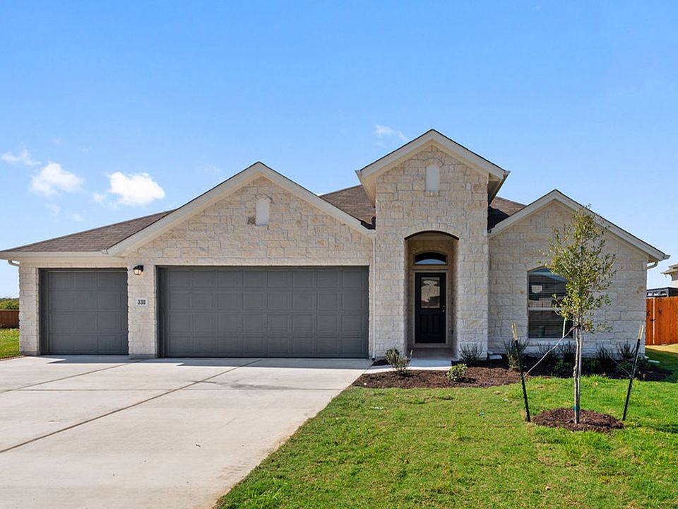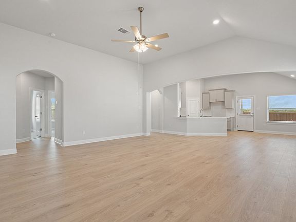 This one-story, 4-bedroom, 3-bathroom floor plan?with a secondary bedroom attached bath?is the ideal multi-generational layout. An open concept, there is plenty of space for being together in the spacious family room, dining room, den (optional fifth bedroom). The kitchen offers eat-in dining, a walk-in pantry, and a peninsula breakfast bar overlooking the whole space. In the Owner's Suite, design decisions like the dual vanity, separate tub and shower, and a remarkable walk-in closet make for a peaceful retreat from the otherwise socially-oriented layout. Thoughtful touches like the formal entry and rotunda, tall living room ceilings, and the spacious back patio make the [Hamlin/ Granbury] a standout within our collection.