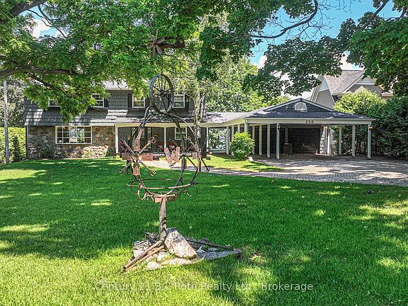 330 Bay St., Orillia on Lake Couchiching is your chance to embrace the glorious potential of a solid, custom-built 1970s two-storey home thats more lived-in masterpiece than move-in ready. A home with history, with character, patiently awaiting your discerning vision to see beyond the original finishes and envision a future where 1970s luxury transforms into 2025's unapologetic statement. Facing east, you'll witness daily sunrises that are so spectacular they'll make you question every late morning you ever slept through. The main level has good bones, a classic layout ready for a dramatic reimagining. The Living Room and Dining Room? Designed with gorgeous views and a walkout to a balcony. The eat-in Kitchen? Its got the views too, just waiting for a chefs touch. And that Family Room with its walkout to the patio? It's begging for laughter, for memories, for a complete refresh.Upstairs, you'll find 5 bedrooms, which means space for everyone and their hobbies. The Primary Bedroom features an in-suite laundry, an ensuite bathroom, and its own private balcony, a truly dedicated sanctuary. Attached by a sheltering breezeway is the two-car garage with two workshop areas for all your projects, plus two additional covered parking spots, all accessed via an interlocking paver driveway that's seen a few seasons, but still offers a grand entrance. Beyond the walls of your future masterpiece, this area is a year-round recreational paradise. Summers here are vibrant, inviting you to spend your days at or on the lake's pristine waters. When winter arrives, the fun doesn't stop. The frozen lake transforms into a playground for ice fishing, skating, snowmobiling, and cross-country skiing. This property isn't for everyone, it's for those who understand that true luxury isn't about perfection, it's about taking something genuinely good, and making it awesome. Ready to explore? Schedule a private viewing and envision your future here.