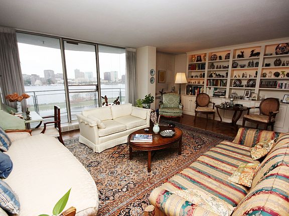 Magnificent water and city views from this rarely available 2 bedroom condo at luxurious waterside Beacon Street home. Doorman building with live-in superintendent. Take the elevator up to the 8th floor which shares a foyer with only one other unit. Enter into this sunny home w/ 9' ceilings and enjoy incredible Waterviews of The Charles River Basin from your large living-room, dining-room, and eat-in kitchen. Step out onto your private terrace / balcony and enjoy the best water Views and breezes in Back Bay. July 4th offers front row center seats for the fireworks. 2 huge bedrooms provide amazing city Views from the picture windows. 2 full baths. Closets galore! Professional management company on site. Garage deeded parking included.