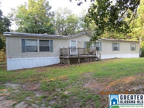 Spacious three bedroom and two bath manufactured home located in a tranquil rural setting; home built in 2000. This home has 2280 sf m/l per Talladega County tax report. Rooms include: living room with fireplace, formal dining room area, den, separate laundry room, and kitchen with island. Over-sized master bedroom with walk-in closet; master bathroom with separate shower and garden tub. Level one acre m/l lot. Home sold in an as is condition. Right of redemption may remain.