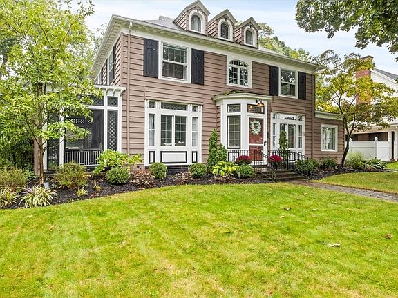 Nestled in the coveted Browncroft neighborhood, this elegant pre-war Colonial blends historical charm with modern sophistication. Rich hardwood floors, leaded glass windows, and intricate millwork greet you as you step into the grand foyer. The family room, with its wood-burning fireplace and custom built-ins, flows into a chef’s kitchen featuring a Wolf 6-burner range, convection microwave, and farmhouse sink. Honed black granite, walnut butcher block, and rustic brick create a warm, inviting space. Unwind in the cozy den or enjoy the serene screened porch overlooking the private yard. Upstairs, a leaded glass Palladian window illuminates three spacious bedrooms, two with adjacent sitting rooms—perfect for home offices. The updated bath features a glass-enclosed dual shower and classic black-and-white tile. A finished third floor offers a guest suite with a second full bath. Outside, a blue stone patio invites al fresco dining in the landscaped, fenced backyard. A true gem in one of Rochester’s most sought-after communities. Showings begin Thursday 9/26 at 12 pm. All offers to be reviewed Monday 9/30 at 11am.