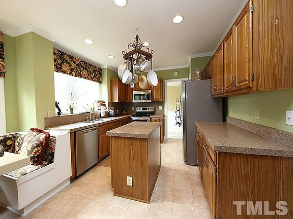 Beautiful transitional home near the Cary YMCA is MOVE IN READY!On A Culdesac! Entire interior repainted in 2/2017.Carpets cleaned 2/2017 Updated kitchen with SS appliances & solid surface counter tops. Siding, Windows, Doors,gutters & roof replaced.Downstairs hvac replaced 2015.Wainescoting in foyer, dining room & up the stairs.What a master bedroom closet!Extra shelving in garage for storage.Screen Porch.Banquette table/chairs,refrigerator,pot/pan rack,washer/dryer,billiard table & bar all convey!
