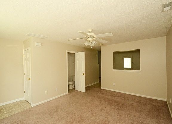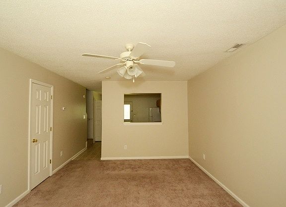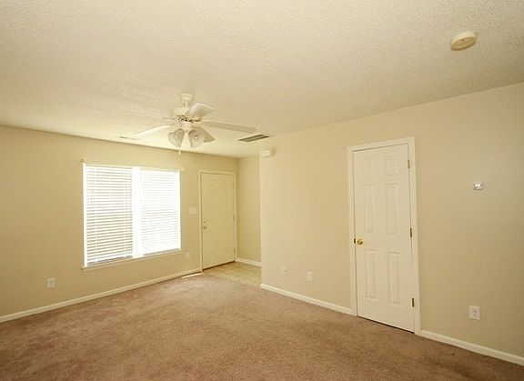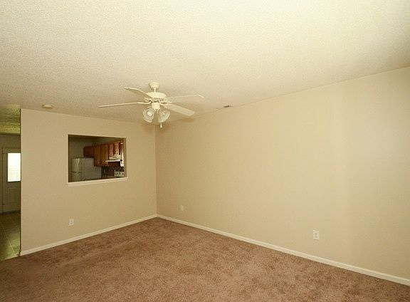 Town home community in the city limits. Sidewalks, security lights, and trash service included. Close to shopping, schools, and bases. Large open eat in kitchen with washer and dryer connections, storage area just outside the back door, and nestled against a tree line. A must see.