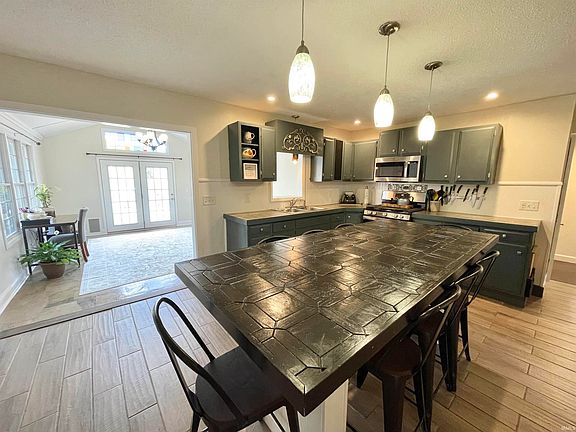 So much to love about all of the updates and space in this 1,900 sq ft. 3 bedroom, 2 bath ranch home!!! Unbelievable, spacious kitchen with concrete countertops, a coffee nook, and a large built-in table for 8! The sunken family room is inviting and features a beautiful wood burning fireplace and window seat. The back sunroom is light and cherry, has a huge stained glass window, and a nice view of the backyard. The spacious primary bedroom has a separate sitting area and plenty of closet space! Laundry area is fabulous. Roof, composite decks, paint and so many other features new in the past 2 years! Great home, in a great location!