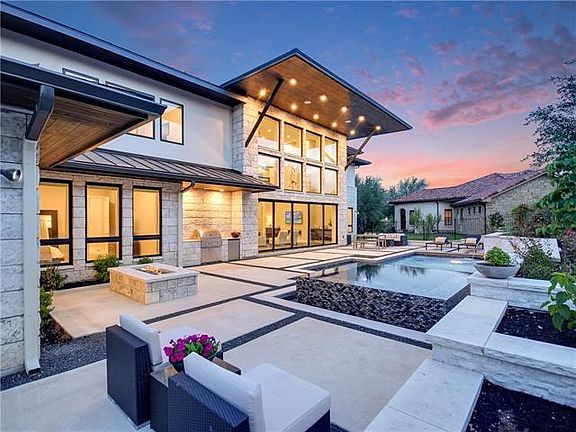 Newly constructed stunning clean line contemporary on 1+ acre in Eanes ISD. Home boasts 5 bd, 5.5 bth,game room, plus a flex room that could serve as a playroom,workout room or additional bedroom.2 bedrooms on main level.Features 3 car over sized garage, quartz counter tops, pecan wood floors, water filtration & softener systems. Home is fully wired w/ speakers, security system & cameras. Nano like Wall leading to a saltwater pool w/ infinity edge spa & outdoor kitchen w fire pit.