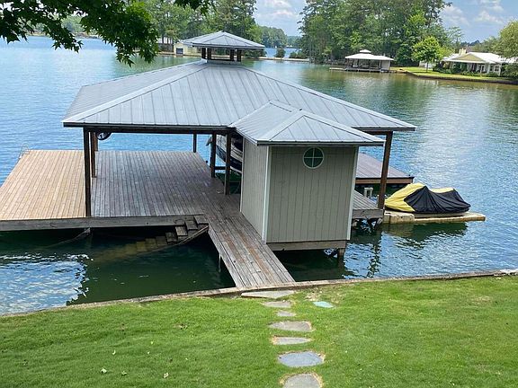 Step outside to a spacious wrap-around deck, ideal for grilling and entertaining, and a separate stone patio for a cozy fire pit and over deep water featuring a large shaded deck and sundeck, boat lift, and storage room for lake floats and toys. There are also two floating docks, both less than two years old, and a private boat ramp for easy lake access.