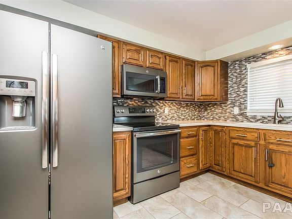 Clean, move in ready family home available in a quiet neighborhood in East Peoria! Updates include a remodeled kitchen with new appliances, flooring and backsplash, both bathrooms remodeled, new water heater and water softener, and new garage door. Other features include a 2-level deck behind the house, a large 2-stall attached garage, and an abundance of living space. Come see this great property today!