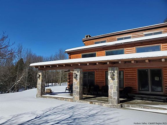 Once in a while that dream LOG HOME comes on the market, & sits on 17 acres of privacy too. This is the harbor for a peaceful life. Open floor plan has living room with ceilings that soar to the rafters, a cozy nook under the balcony. The kitchen and dining area form a wonderful entertaining space that can easily continue to the deep front bluestone covered porch. 1st floor bath with laundry. The interior walls & ceilings of wood & exposed beams accentuate the beauty of the log home. 2nd floor balcony overlooking the living room area, a loft style, home office space, so important now for work and schooling from home. 2 bedrooms & full bath. Radiant heat on 1st floor. 4 car spaces in garage, with wood stove, automatic LP fueled stand by generator. The King of heating boiler systems in the partial basement. Dog kennels with water and electric. Long driveway, ensure the home can't be seen from the road. Large manicured fields behind the house, small pond. This would make a nice horse property if fencing were added. Room to explore, atv ride, practice your golf swing. Cross country ski, snow mobile on your own property. Short ride to local amenities, great restaurants & hiking trails.