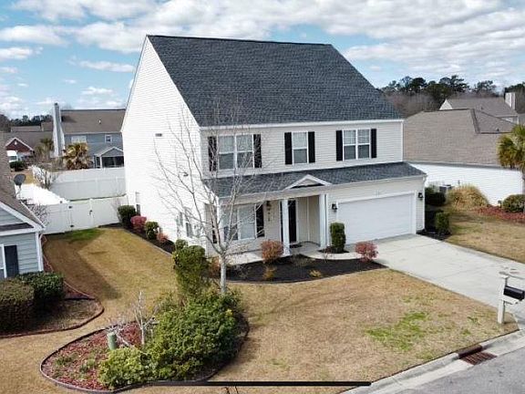 NEW ROOF JANUARY 2025. Spacious, move-in ready 5 bedroom, 3 1/2 bath home in the sought after neighborhood of Woodbury, steps from the neighborhood pool. This lovely home boasts an open floor plan with a formal dining room, kitchen flowing into the family room and hardwood floors. The downstairs includes a first floor laundry room and an oversized en-suite bedroom including a walk-in closet, double sinks, and extended shower. Upstairs are 4 spacious bedrooms and a loft with built-in bookcases and wainscotting. All bedrooms have laminate flooring, walk-in closets and ceiling fans. French Doors open to a large, private, fenced-in backyard with extended concrete patio, deck and firepit. New AC installed 2020. 80 gallon water heater. SELLER IS A SC LICENSED REALTOR.