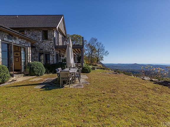 This magnificent home, nestled at the top of Brushy Face Road, has a million dollar view! It was built by Keith Ashe, and designed by Norman Askins. one of Atlanta's top architects The stone exterior gives you feeling of being in the Scottish Highlands as you drive up into the driveway. But, it is the view on the back of the house that literally takes your breath away! Gazing down on the clouds, one readily agrees that this venue offers one of the top views in western North Carolina. The home features five spacious bedrooms and six and one-half baths. Two of the bedrooms are on the main level. The Master bedroom features his and her baths. As one enters the home, the rich paneling in the large foyer is warm and inviting. The living area, with its beautiful exposed wooden beams, overlooks the wide expanse of Blue Valley. The room centers on a large stone wood burning fireplace. Hardwood floors are featured on the entire main level. The kitchen features a large island with eat-in bar. It also has a small cozy fireplace and a nook with table and chairs for a separate dining area. Off of the kitchen is the Carolina Room which has a huge stone fireplace, wooden beams, and is surrounded by floor to ceiling windows and doors. The floors are stone and the vaulted ceiling gives the large, comfortable room a regal feeling opening to the lovely outdoors. The home is tastefully decorated and beautifully furnished with each room containing unique features. Upstairs there are three large guest bedrooms, three baths, and an office/study. Many of the rooms contain wooden walls and ceilings. Outside on the main level there is a covered area for entertaining and comfortable chairs grouped for conversation and looking out over the mountains. What a wonderful place to entertain large groups of friends or small family gatherings! This home, truly one of a kind, is in pristine condition. It is only minutes from downtown Highlands and great dining and shopping.