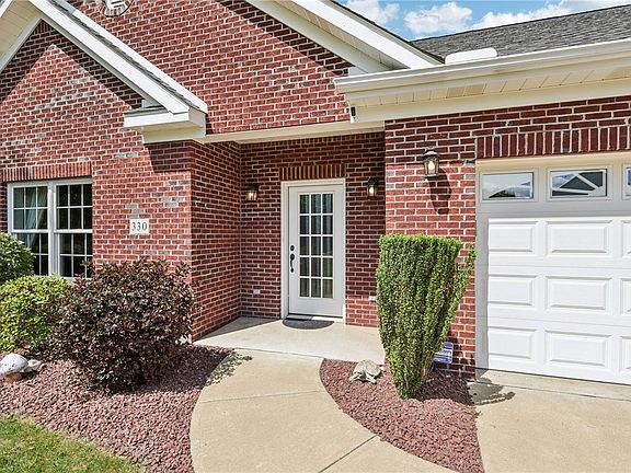 Experience the comfort of 1st floor living in the desirable Garden View Estates community. This charming brick-front home features a grand entrance, formal living room/Den & an impressive kitchen equipped w/Maytag SS appliances including a double oven, country undermount sink & huge pantry!. Enjoy the convenience of a huge pantry & soft close cabinets complemented by a stylish tile backsplash. The dining rm opens to a serene screened-in porch, perfect for relaxation & privacy. Additional highlights include a 1st floor laundry, primary suite w large walk-in closet, vanity w/granite counter top a 2nd bedrm, a conveniently located second full bath & beautiful engineered HW floors (carpet in family room & bedrooms). With an instant hot water tank & a 2-car Attached garage, this home offers everything you need. Enjoy access to a community center w/workout equipment & a gathering room for events. Conveniently located near shopping, Pitts Airport, & the turnpike, a perfect place to call home!
