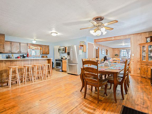 Take a look at this 3 bedroom house located on 3.73ac with a stocked pond, less than 10 minutes to town!! Inside, there is a large living room and the kitchen has plenty of workspace and nice stainless appliances including: gas range, OTR microwave, dishwasher. There are 2 bedrooms, full bath, and large laundry room/pantry upstairs. Downstairs, there is central gas heat that was just installed in 2019, wood stove for backup heat, bedroom 3, kitchen, and lots of storage. Outside, the metal roof was just installed a few months ago!! There is a large deck, some fencing around the property, a stocked pond of channel catfish, storage sheds, an extra water tap and septic system for the 14x66 singlewide (may not be livable, but could be used for storage). Call today to schedule a showing!!