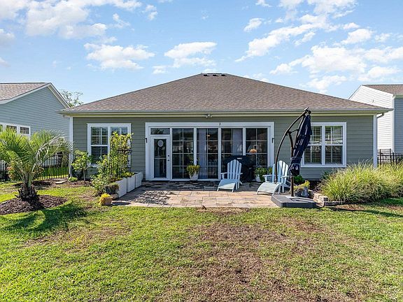 Exquisite home in beautiful Hammock Cove, located in Pawleys Island in the coveted Waccamaw school district. Truly nothing to do but unpack in this amazing single story and upgraded 4 bedroom, 3 bath ranch, 3-car garage home situated on a fantastic lot with mature landscaping and beautiful curb appeal. The home features an open living area with 9-foot ceilings throughout the living, dining and family rooms. The spacious kitchen boasts quartz counter tops, a very large island, beautiful cabinetry, a walk-in pantry and stainless appliances and opens up to dining and living area. Beautiful wood flooring throughout living area. The Owners Retreat has plank flooring and two custom walk-in closets. The luxurious master bath area is accented by a 60" tile shower. The living room has a magnificent double sliding door with 4 panes of glass providing a beautiful view of back yard space, overlooking the water and opening up into a tastefully appointed sunroom. And from the front, you have a view of an awesome "Live Oak"! The 3 Car Garage is convenient as a workspace or storage for a golf cart or boat. Fours years remain on builder home warranty. Location is Perfect - A short golf cart ride or drive to the beach. The area is surrounded by top-tier golf courses and tennis facilities, which are all close to the beach, boating & fishing.