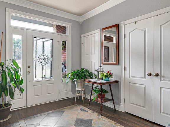 WOW !!! Just in time for summer fun in the Sun! Great Hallsville home complete with 4 Bedrooms, 3 full bath,2 living areas and inground pool for an amazing outdoor experience. This home is well designed with the master bedroom and one other bedroom/ bath split from the rest of the home. Master bedroom has an open area that could be used as nursery, office or storage area. Kitchen is large with ample storage, solid surface countertops, and formal dining. Tall ceilings for a expansive feeling in every room. Largest lot in the area with .95 Acres. Shop is 20 X 40 and has 1 large roll up door and 1 walk through door . Large storage area outside for all your pool and outdoor activities,. Take a look at this wonderful home that has so much to offer right in time for summer fun!!