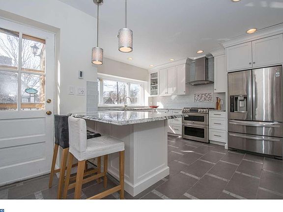 Beautiful, 4405 square foot, Stone Colonial on one-third acre in Merion Station! This wonderful residence has been completely remodeled and features 5 bedrooms, 3 full baths, 1 powder room and loads of living space. An over-sized formal Living Room offers wood burning fireplace and gorgeous, refinished hardwood floors, which you will find throughout the house. A Dining Room opens to the living room and Kitchen with French doors leading to a tranquil covered brick patio. The spacious, light filled kitchen, with heated floors, offers all of the amenities a chef would want; granite counters, stainless steel appliances, gas cooking, new custom wood cabinets, walk in pantry and loads of counter space. A private den/office, which is currently being used as a playroom, has a private powder bath and completes the main floor. The 2nd level has a guest suite with remodeled bathroom, large office or bedroom and laundry. A few steps up and you will find a spacious 3rd floor with master suite, walk in closets with built ins and a fabulous en-suite bath with radiant heat floors, beautiful tiled shower with 3 shower heads and seamless glass doors as well as your very own 3 person sauna. This level has two additional bedrooms which share a hall bathroom. An enormous lower level includes a spacious and sunny Family Room with access to the back yard, storage and access to the over-sized one car garage. This move in ready home is in award winning Lower Merion School District and a walk to everything location-including parks, library, places of worship, shops, schools, train, bus and restaurants.