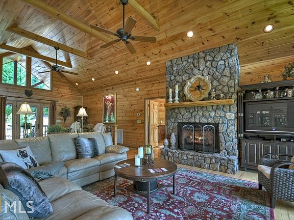 If you are looking for long range mountain views, you don't want to miss this one! Located in the prestigious Mountain Tops community with all paved access and less than 5 minutes from downtown Blue Ridge, this immaculately maintained cabin with gorgeous year-round mountain views truly has it all. Oversized glass windows, cathedral ceilings, stainless-steel appliances, oversized master, double vanities, clawfoot tub, custom walk-in tile shower, and hardwood floors all add to the high quality of this home. The terrace level offers 2 bedrooms, full bath, and a den/entertainment area with a wet bar. Entertain your family and friends on the screened-in party porch with a stone fireplace and enjoy one of the best mountain views in the area. Come take a tour today; this one will not last long!