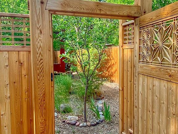 open floor plans and lots of natural light. The walls are double brick providing wonderful cooling in the summer and keeping in the heat in the winter. The membrane and iso-board insulation roof is 2 1/2 years old. The clothes dryer is 1 year old. The clothes washer is 3 years old. The dishwasher is 3 years old, but hardly used. A new electrical panel was installed in 2022. The furnace was new in 2021 and the Rinnai was installed in 2022. Luxury vinyl plank flooring on the west side was installed in 2021. The gate leading to the private courtyard and east side entrance was built in 2021 by a master woodworker and former woodshop teacher at Saguache High School in 2021. The intricate gate design is a Japanese technique learned during mentorship in Japan. Both spaces have their own private backyard or courtyard sanctuaries with flowering and fruit bearing trees and a fire pit in the courtyard (hidden garden). Seller has complete renovation floorplan done by a licensed architect that would convert the existing duplex to one living unit. Value: $10,000, should a buyer be interested.