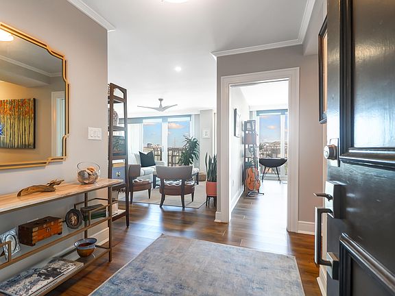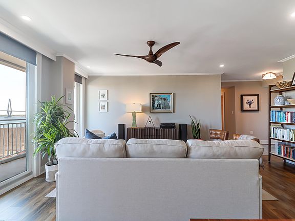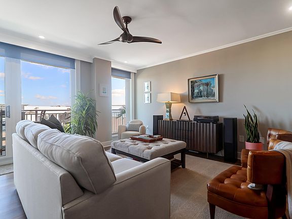 Welcome to waterfront luxury living at its finest in this stunning condominium overlooking the majestic Charleston Harbor. With sweeping vistas of the Cooper River and the iconic Ravenel Bridge, this residence offers a lifestyle of unparalleled beauty. Step inside to discover a meticulously updated interior boasting an inviting open floor plan, where every detail has been thoroughly thought out. The expansive living space seamlessly flows into a gourmet kitchen adorned with sleek soft-close cabinets, gleaming countertops, and top-of-the-line appliances, creating an ideal setting for cooking meals and entertaining guests. Both bathrooms have undergone a complete transformation, exuding timeless elegance with their contemporary finishes and fixtures.Throughout the home there are new luxury vinyl plank floors and fresh paint. The new hurricane-rated sliding glass doors and hurricane panels give a sense of security in the event of a storm and lead to a private balcony, where you can indulge in breathtaking views of passing dolphins, majestic ships, and vibrant fireworks displays on the 4th of July. Conveniently located within walking distance to downtown Charleston, residents can enjoy award winning restaurants, boutique shopping destinations, and picturesque parks. Dockside is a lovely community with a brand new Terrace, a swimming pool and sauna, a library, a club room, a privately owned pier and a Riverwalk. Don't miss this rare opportunity to make this exquisite waterfront retreat your own.
