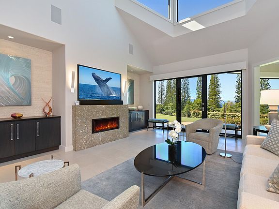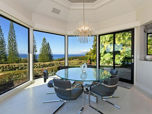This private ocean view estate is situated on approximately a half-acre in one of Kapalua’s most popular neighborhoods, Pineapple Hill. Remodeled in 2018 with a contemporary, elegant island inspired design, this home is one of the most secluded in the community. The main home is comprised of a spacious living room with a fireplace and soaring ceilings, a gourmet kitchen and ocean view dining room, wet bar, home theatre, three ensuite bedrooms, and an office loft. A detached suite complete with a full bath offers a flexible space for guests or an artist’s studio with an abundance of natural light and its own entrance. One of the loveliest features is the garden--a tropical oasis that wraps around the side of the home complete with a gazebo, waterfall and a stone edged pool and secluded hot tub. There is a sheltered lanai area overlooking the garden as well as a large lawn, with vistas of the Pacific Ocean and the neighboring islands of Molokai and Lanai perfectly framing Maui’s spectacular sunsets over the Pailolo Chanel. A chef’s dream, the kitchen features custom wood cabinetry cloaked in Lemurian Blue granite, an induction cooktop, oven and dishwasher by Miele, and Subzero refrigerator, freezer and ice maker. Just off the kitchen and dining room is an outdoor kitchen with a Lynx built in BBQ. The primary bedroom suite is tucked away in the Southwest corner of the home, and features ocean and garden views, hardwood floors, custom draperies and furnishings, and a reimagined bath, a sanctuary with granite walls, a walk-in shower and a gorgeous soaking tub. Impeccably maintained by the current owners, this stunning home is offered fully furnished and turnkey. This is a rare offering of one of only six homes situated on two or more contiguous lots in Pineapple Hill, allowing for an expanded custom floor plan surrounded by tropical gardens. Amenities within the gated Pineapple Hill community include an onsite manager, community pavilion, pool, gardens, a tennis court, and two pickleball courts.