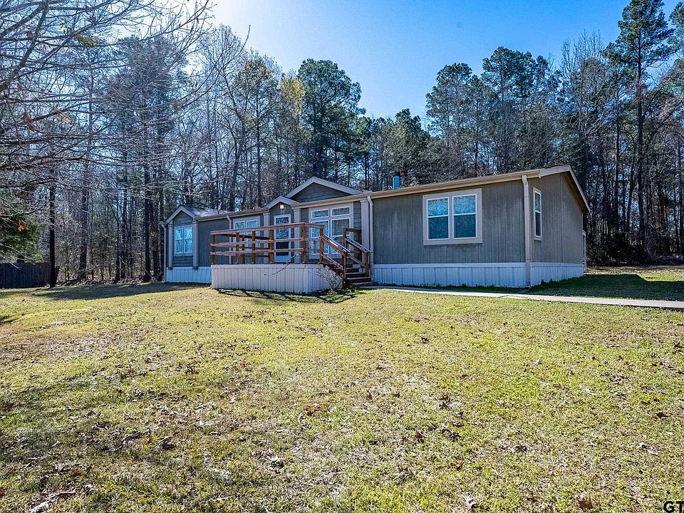 Back on the market due to previous buyer's change of plans. This 3 Br/2Ba home is situated at the back on the almost 2 acre lot with a nice scattering of trees in the front yard & a dense growth of trees providing extra privacy in back. From the wide deck, step into the large family room with its vaulted ceiling & fplc. Central air registers in this Palm Harbor Deluxe are located in the ceiling. The primary bdrm is split from the other 2 bdrms. The spacious kitchen has a large functioning island, tons of cabinets & counter space, a separate coffee bar & a window above the sink to view your backyard. The utility room is a true all purpose room with a sink, pantry & mud area for clean up when entering from the back. The primary bath is an oasis with a shower, large soaking tub and separate vanities. At the other end of the house, the guest bath is off the main hall with a wall of cabinets for extra storage. This home has been well maintained.