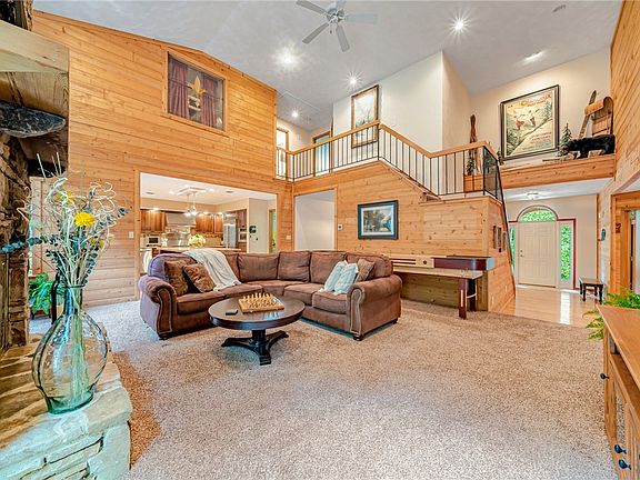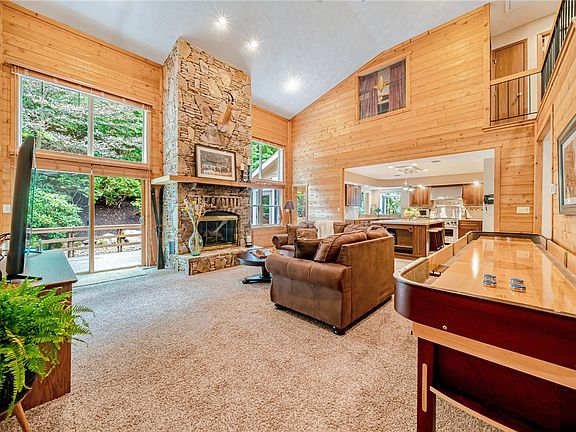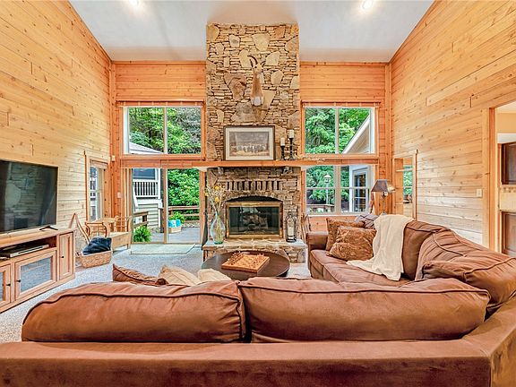 Gorgeous Single Family, Deer Ridge Home at Seven Springs Resort. Drive up to this freshly landscaped home on almost .5 acre lot and admire the beautiful setting. Step up to the quaint covered porch and walk thru the entry to admire the cathedral ceilings, rustic cedar woodwork and all the details this mountain home offers. The great room has a wall of windows for natural light & a towering stone fireplace. The remodeled kitchen features granite countertops, stainless steel appliances, oversized kitchen island, radiant heated floors plus a sunroom off the kitchen. There is also a formal dining room for entertaining. The spacious Master Bedroom Suite is on the main floor and it has the most stunning bathroom with jetted soaking tub, double vanities and walk-in closet. There is a 2nd Suite upstairs along with 2 additional bedrooms and full bathroom, easily set to sleep 12. Out back relax in the Hot Tub! Plus Oversized 2 Car Garage, laundry/mud room & Shuttle to Resort!