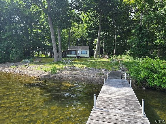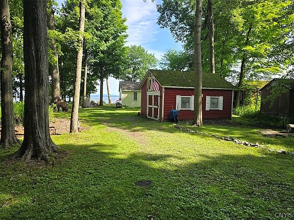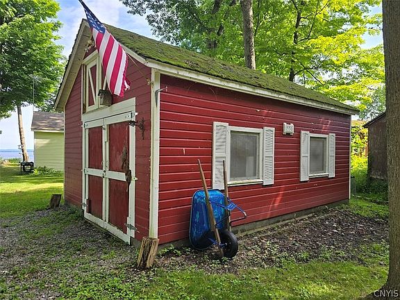 Charming Oneida Lake Cottage with privacy! 66 Ft of Waterfront with great depth for your boat, cute updated 2 bed/1 bath cottage with screened in porch and unparallel views, detached garage with workshop, separate "bunk house" for extra sleeping space, garden shed, outdoor "kitchen" area, great parking and yard AND its being sold completely turn key... EVERYTHING ON THE PROPERTY IS INCLUDED! Located at the end of a dead-end Road with vacant land that can't be built on across the Road and right next to Godfrey point boat launch! This Sale Includes newer 40ft dock, 2009 Pontoon Boat, solar boat lift, tools, furniture, contents, kayak, screened gazebo and more!
