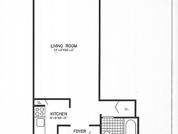 This straight studio apartment in midtown Manhattan offers a comfortable living space. With northern exposure, it allows for ample natural light throughout the day. The kitchen features sleek white Formica cabinets, a stylish black granite countertop, and modern white appliances. The flooring in the kitchen is adorned with gray porcelain tiles, adding a touch of elegance to the space.