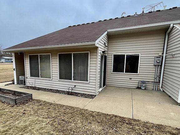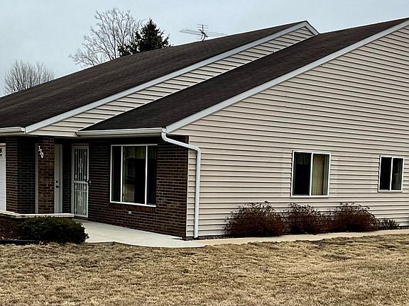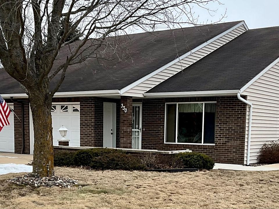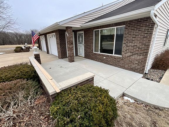 Are you looking for one level living with a country view on the edge of town? This may be your new home! There have been many recent updates including freshly painted walls and ceilings throughout, new stainless steel kitchen appliances, new sink, kitchen faucet, and countertops. New flooring in the kitchen, bathrooms, and laundry area, The bathrooms have raised toilets, vanity tops and faucets. The owner's bedroom has a walk in closet with adjoining bathroom with handicap accessible walk-in shower. The second bedroom has huge double closet. There is a bonus room that could serve as a third bedroom, four season porch, or office, whatever you'd like it to be. The bonus room walks onto a private patio with large country views. There is also a patio out the front door with a cement walkway to the back patio. The garage is an oversized single stall with a lot of storage space. In floor heat and central air make this a very comfortable home year around.